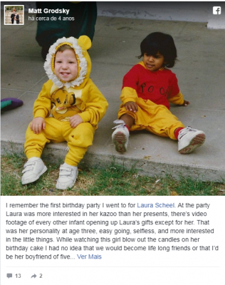 “Uma das minhas primeiras memórias que tenho, é de ter três anos, e estar em frente à turma do infantário a dizer que ia casar com ela um dia”, escreveu Matt.